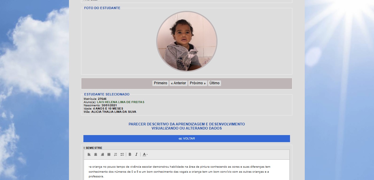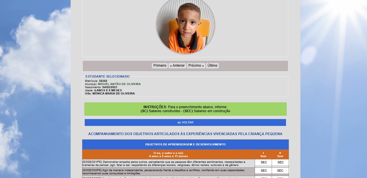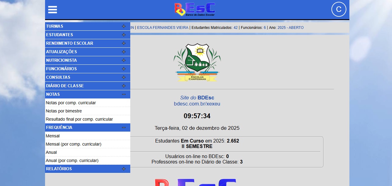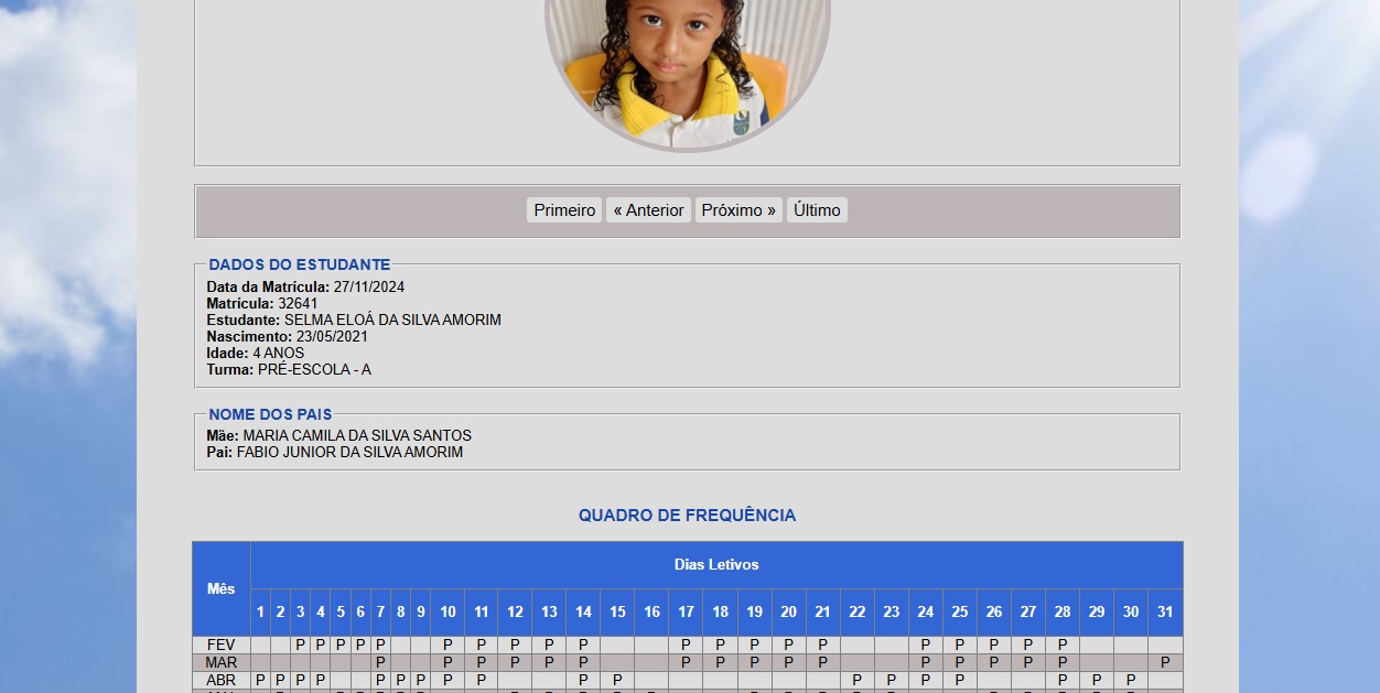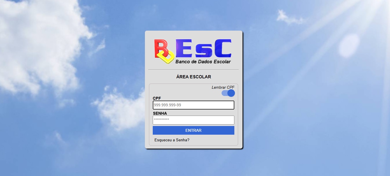 Na área do estudante, com senha criada automaticamente pelo sistema, o estudante pode acessar o boletim e visualizar a frequência. Essa área também pode ser acessada pelos pais dos alunos.