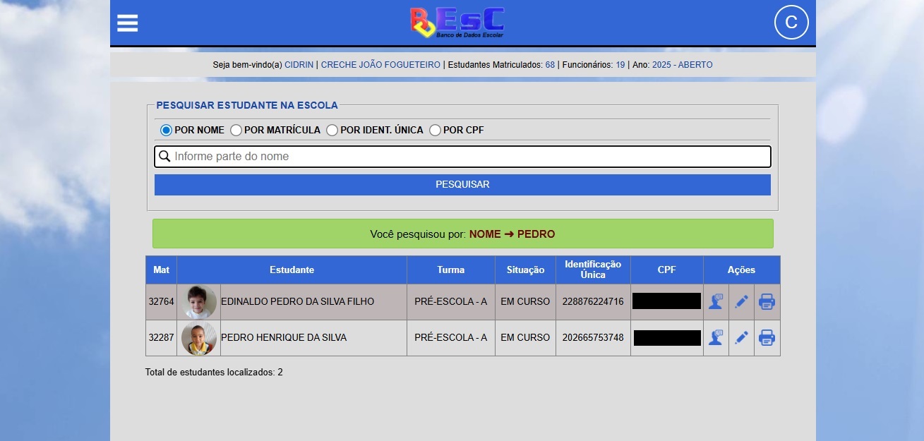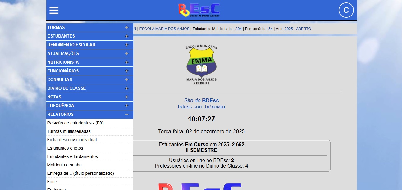 O pessoal conta com relatórios para a secretaria como: relação de estudantes por idade, por sexo, bem como estudantes neurodivergentes. Sendo relatórios muito úteis em época de vacinação em massa e tomadas de decisão.
