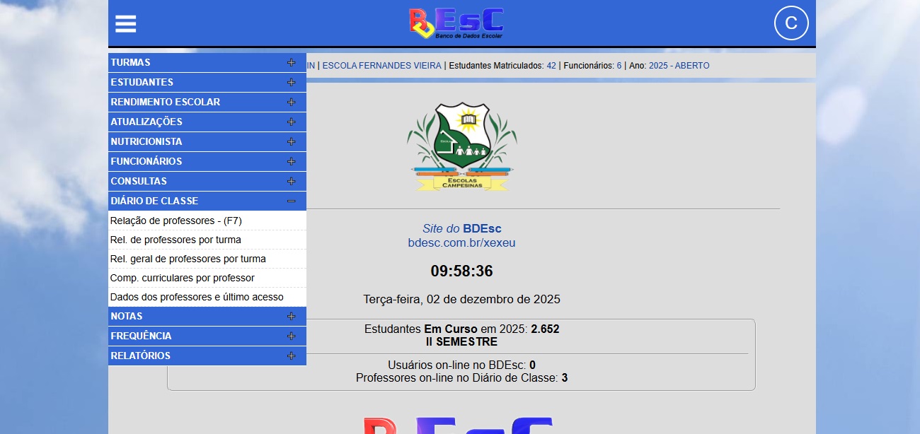 O BDEsc surgiu com a necessidade que tivemos de gerenciar e organizar todas as informações necessárias dos estudantes da rede de ensino. Assim o sistema foi desenvolvido com as áreas: escolar, do professor, do gestor, do estudante e da secretaria de saúde.