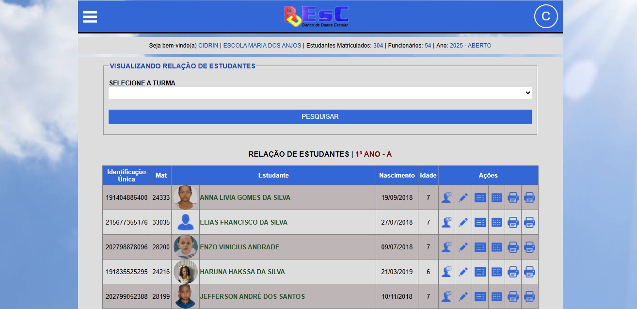 TUDO O QUE A SUA ESCOLA PRECISA 📋 Cadastro completo com a foto do estudante; 🔎 Consultas rápidas; 📊 Relatórios detalhados, prontos para impressão ou exportação; 🔐 Segurança de dados e conformidade com a LGPD; ☁️ Acesso 100% on-line, de qualquer dispositivo, de qualquer lugar.