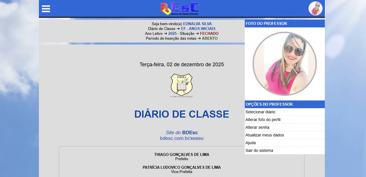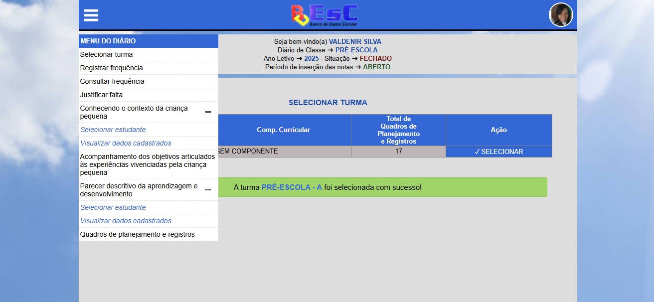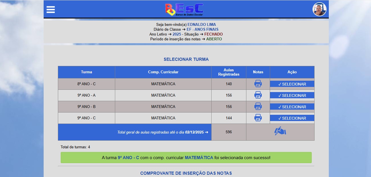 Nessa área o professor tem acesso ao Diário de Classe On-line. Poderá acessar as turmas autorizadas pelo gestor para o registro de frequência, notas, registro de aulas ...